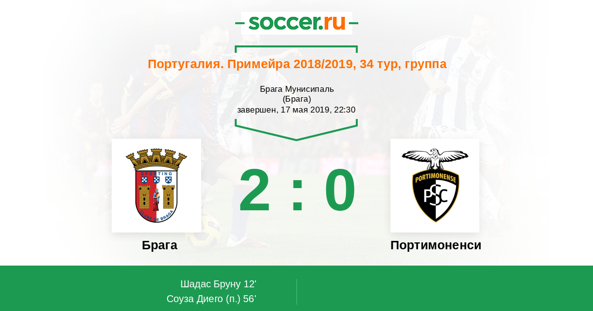 12' (1:0) Шадас Бруну (10) (Эшгаю Рикарду (47))