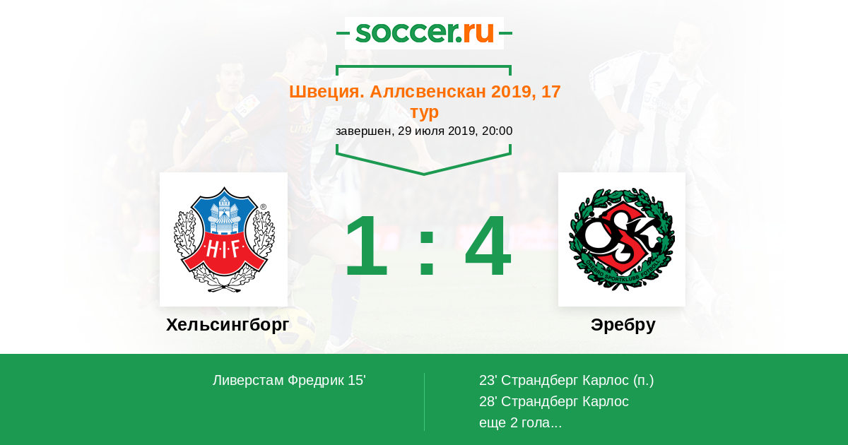 58' (1:4) Ларссон Джейк (12) (Мехмети Агон (19))
