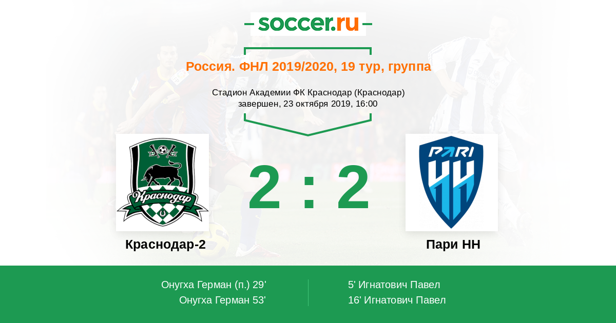53' (2:2) Онугха Герман (60)