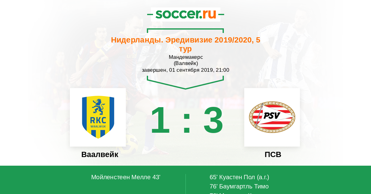 43' (1:0) Мойленстеен Мелле (3) (Элберс Стэнли (17))