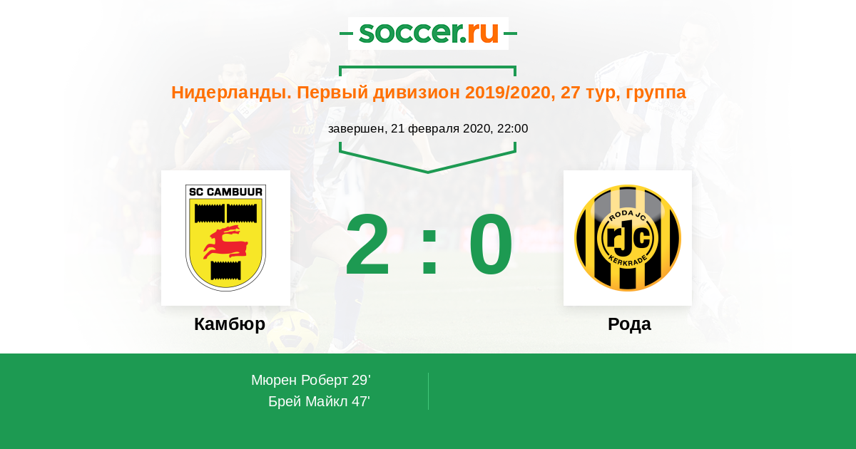29' (1:0) Мюрен Роберт (21) (Худемакерс Меес (6))