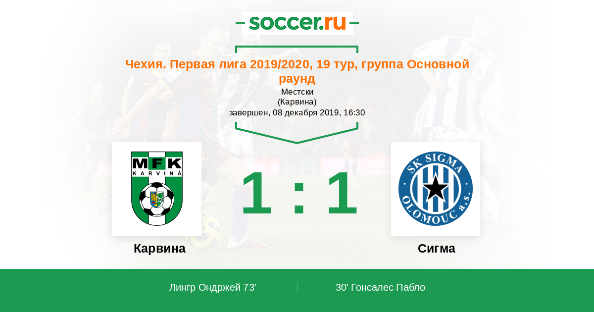 73' (1:1) Лингр Ондржей (10)