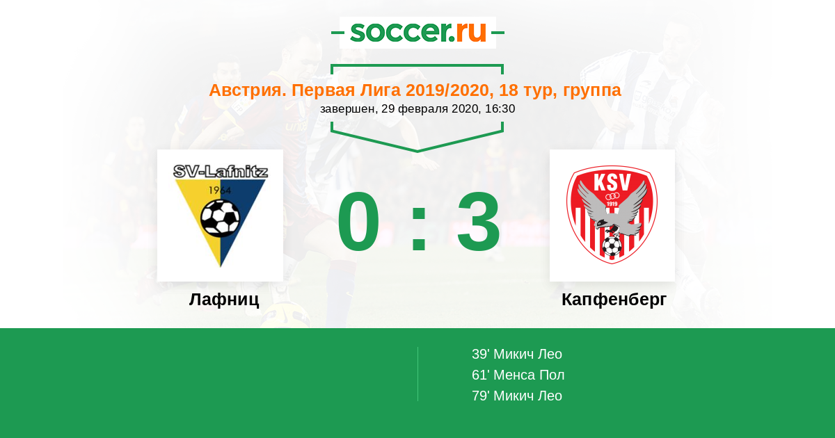 39' (0:1) Микич Лео (22) (Менса Пол (9))