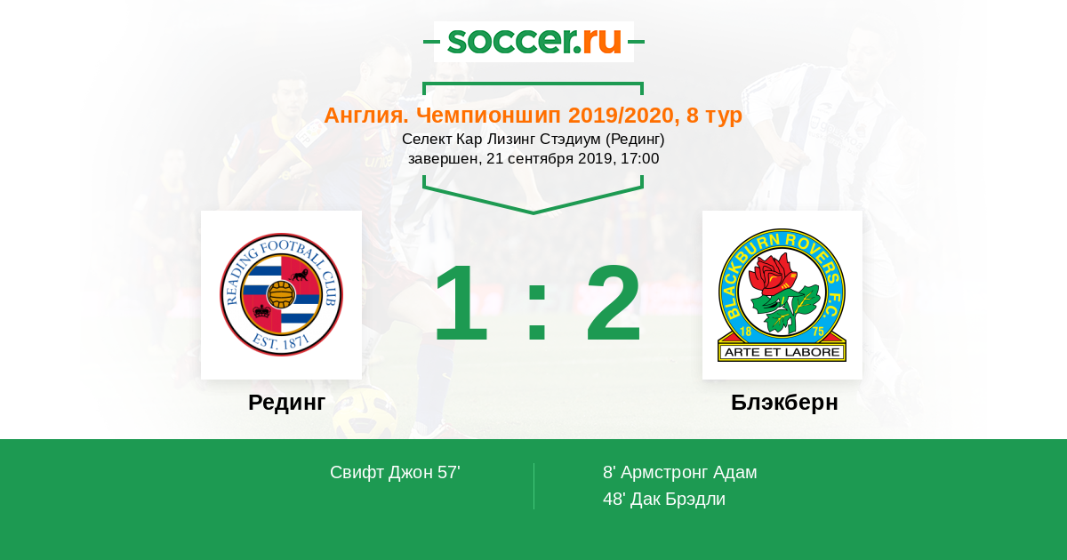 8' (0:1) Армстронг Адам (7) (Даунинг Стюарт (19))
