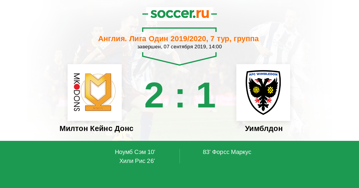 26' (2:0) Хили Рис (10) (Гилби Алекс (8))