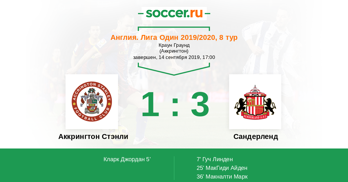 25' (1:2) МакГиди Айден (19)