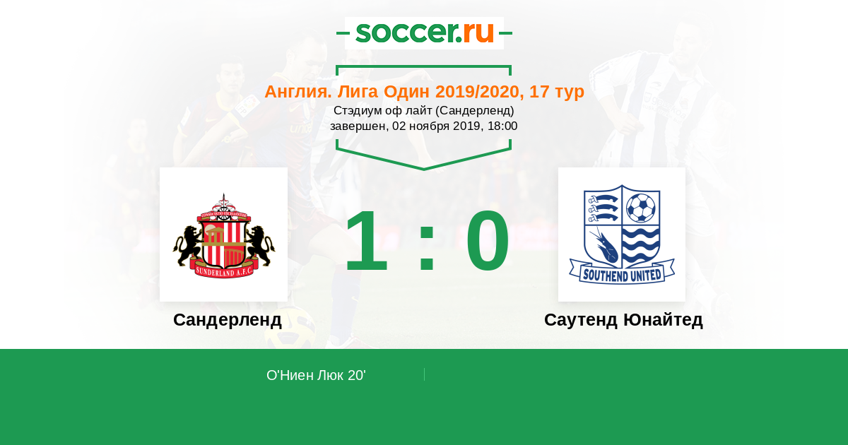 20' (1:0) О'Ниен Люк (13) (Хьюм Денвер (33))