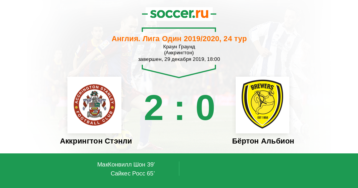 65' (2:0) Сайкес Росс (5) (МакКонвилл Шон (11))