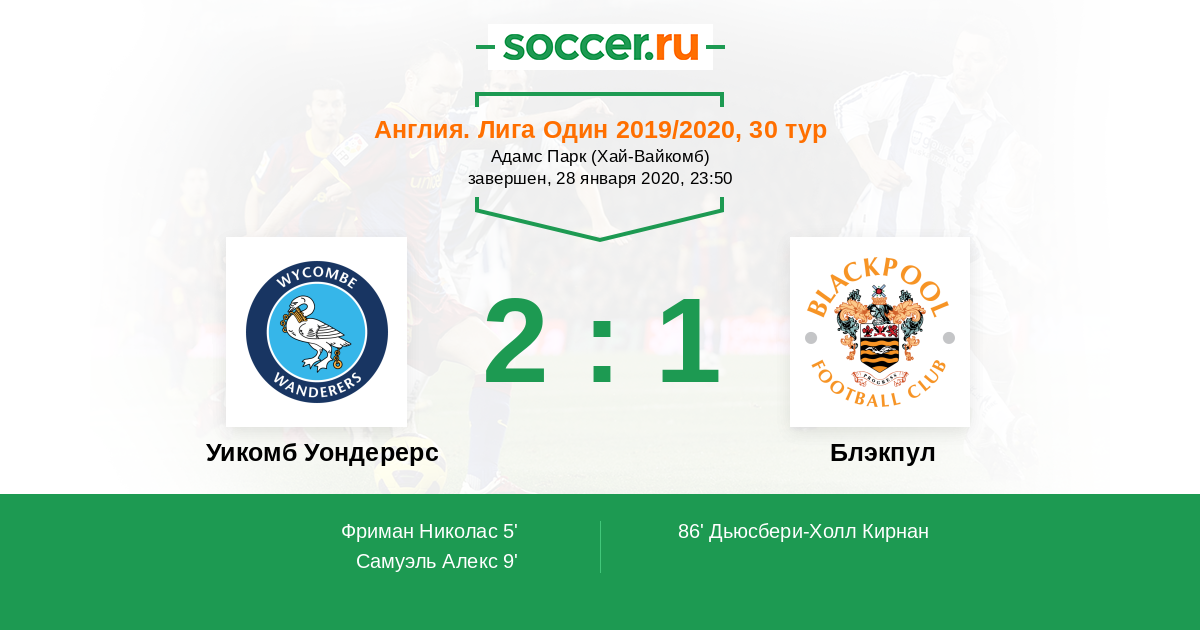 9' (2:0) Самуэль Алекс (25) (Уилер Дэвид (7))