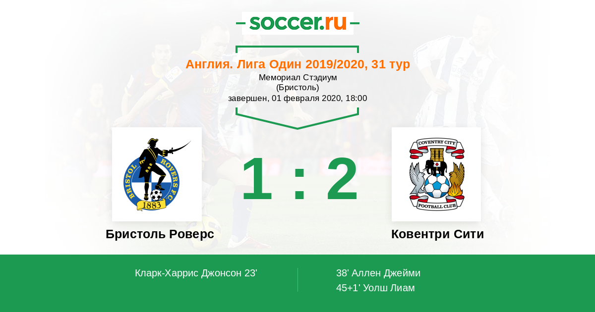 45+1' (1:2) Уолш Лиам (20) (О'Хэйр Каллум (17))