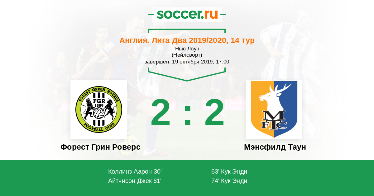 74' (2:2) Кук Энди (19) (Нил Бишоп (6))