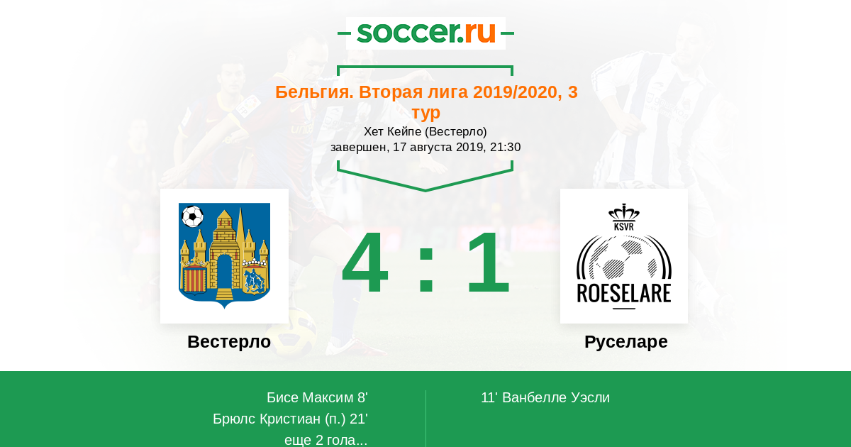 21' (2:1) Брюлс Кристиан (22)