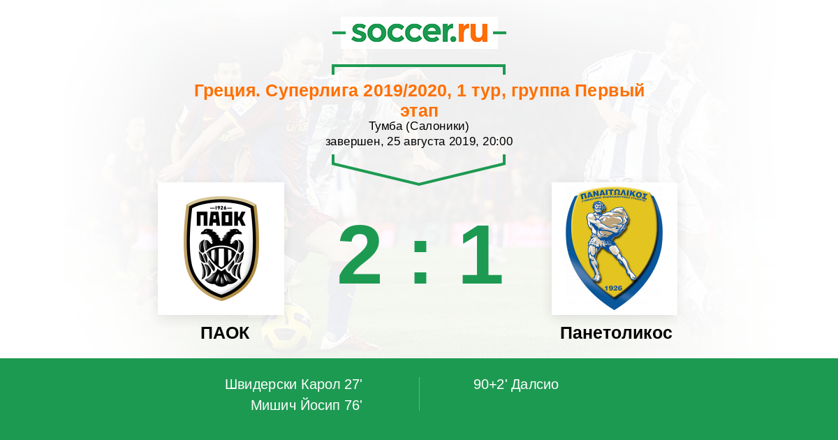 27' (1:0) Швидерски Карол (9) (Яннулис Димитрис (23))