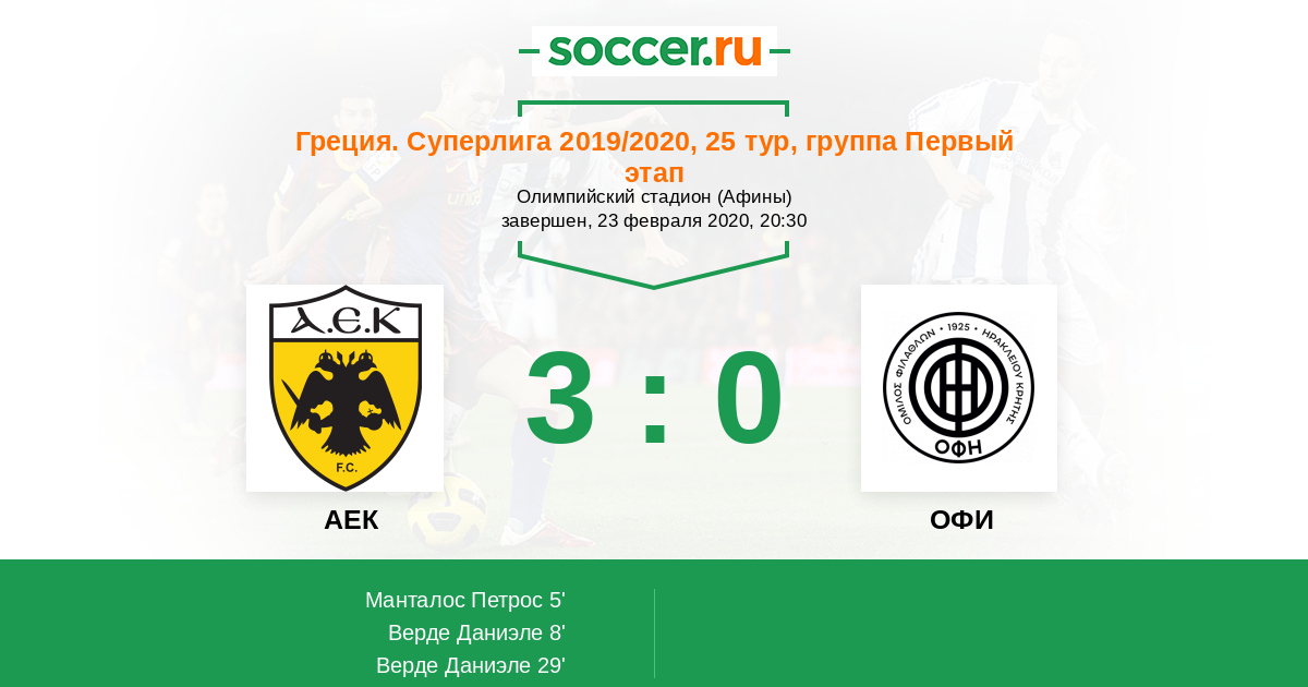 8' (2:0) Верде Даниэле (7) (Бакакис Михалис (2))