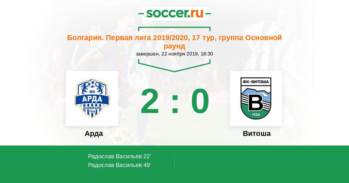 22' (1:0) Радослав Васильев (99) (Коконов Иван (17))