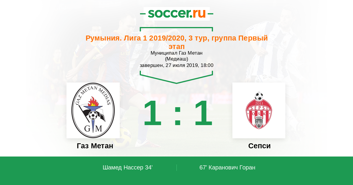 67' (1:1) Каранович Горан (25) (Чарнат Николае (27))
