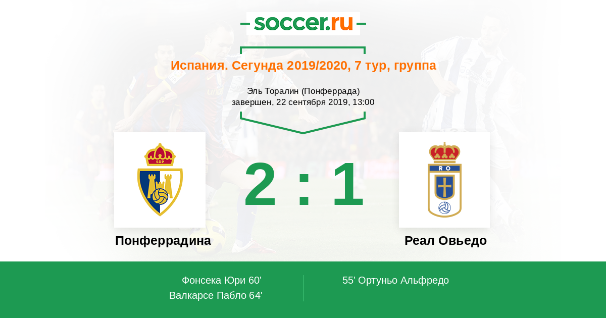 55' (0:1) Ортуньо Альфредо (15) (Санчес Борха (19))