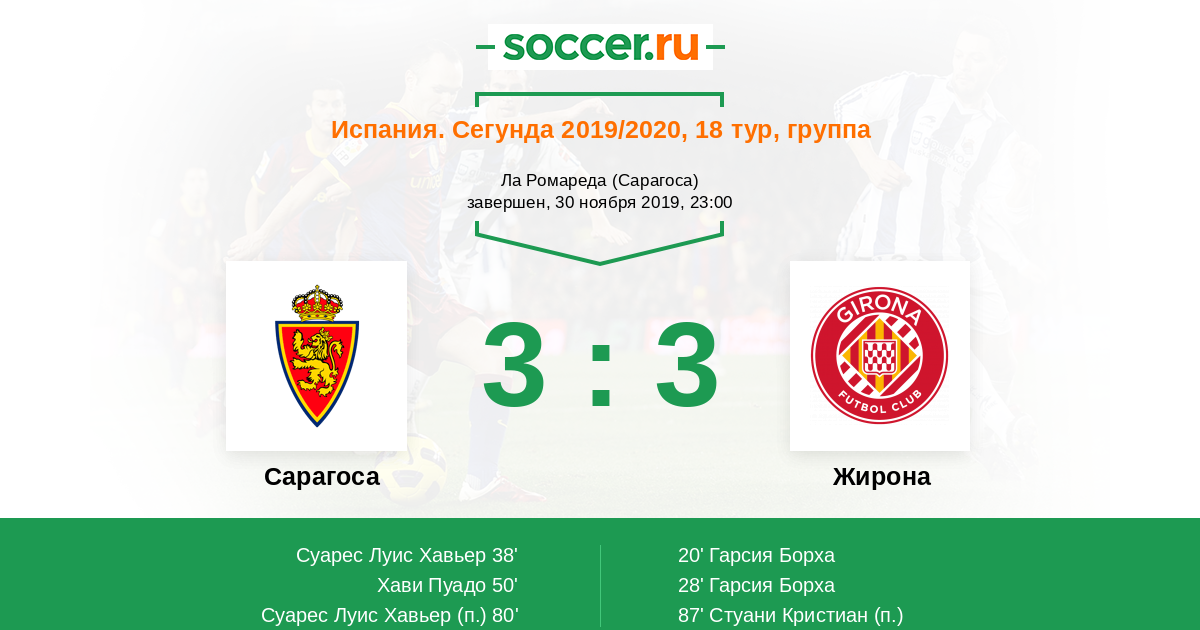 20' (0:1) Гарсия Борха (10) (Маффео Пабло (20))
