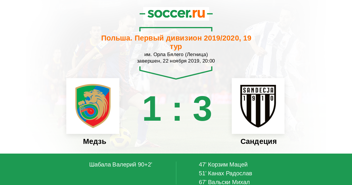 47' (0:1) Корзим Мацей