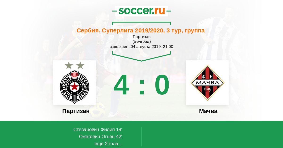 19' (1:0) Стеванович Филип (80) (A. Lutovac)
