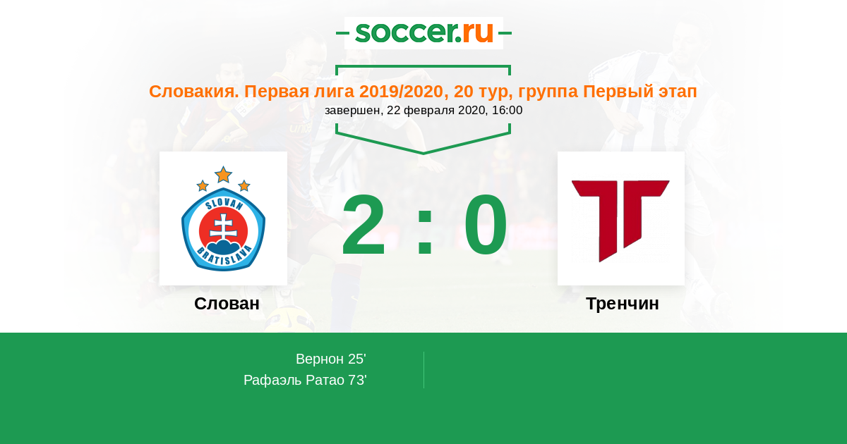25' (1:0) Вернон (81) (Давид Холман (27))