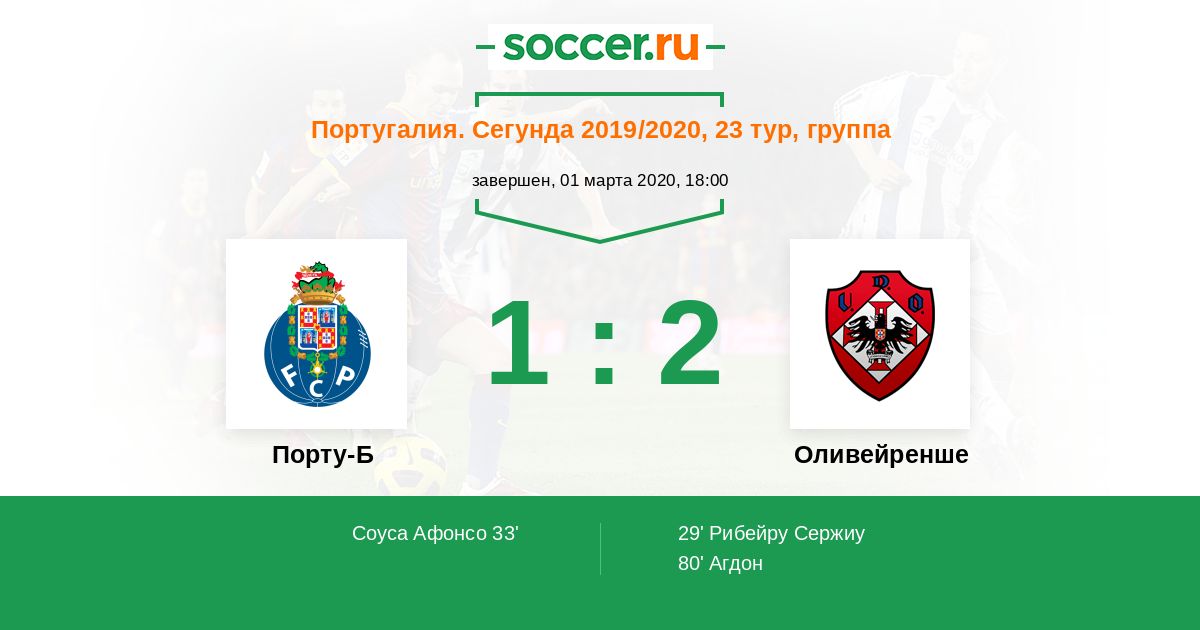 29' (0:1) Рибейру Сержиу (12)