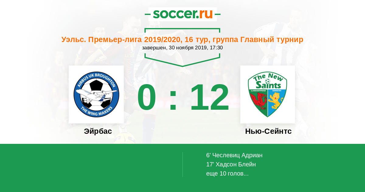 Матчи Уэльс. Премьер-лига 2019/2020