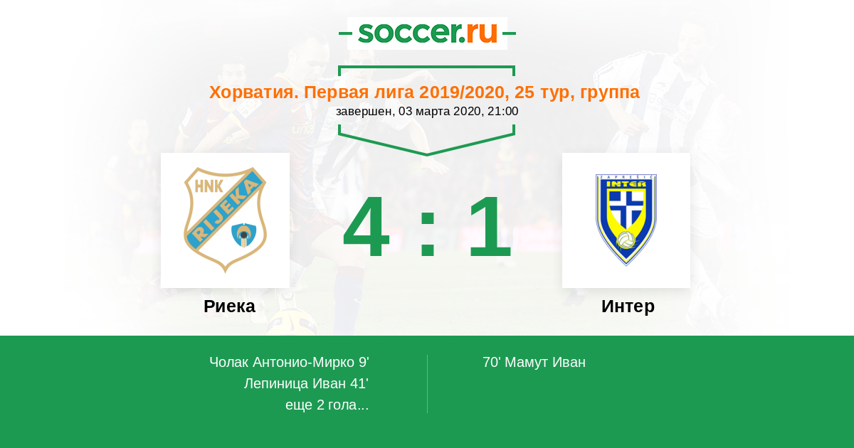 9' (1:0) Чолак Антонио-Мирко (17)