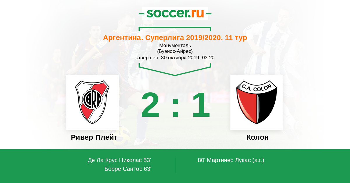 53' (1:0) Де Ла Крус Николас (11) (Суарес Матиас (7))