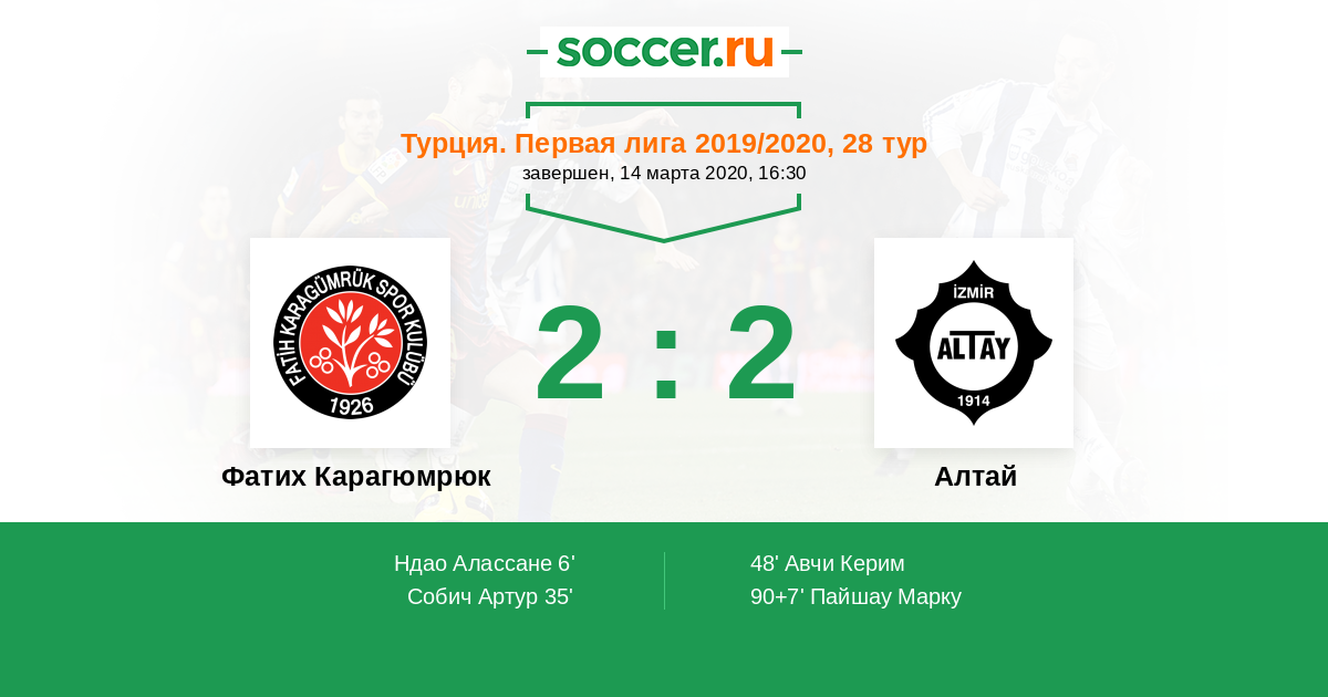 Гол90+7' (2:2) Пайшау Марку (19) (Хасимустафаоглу Ясер (99))
