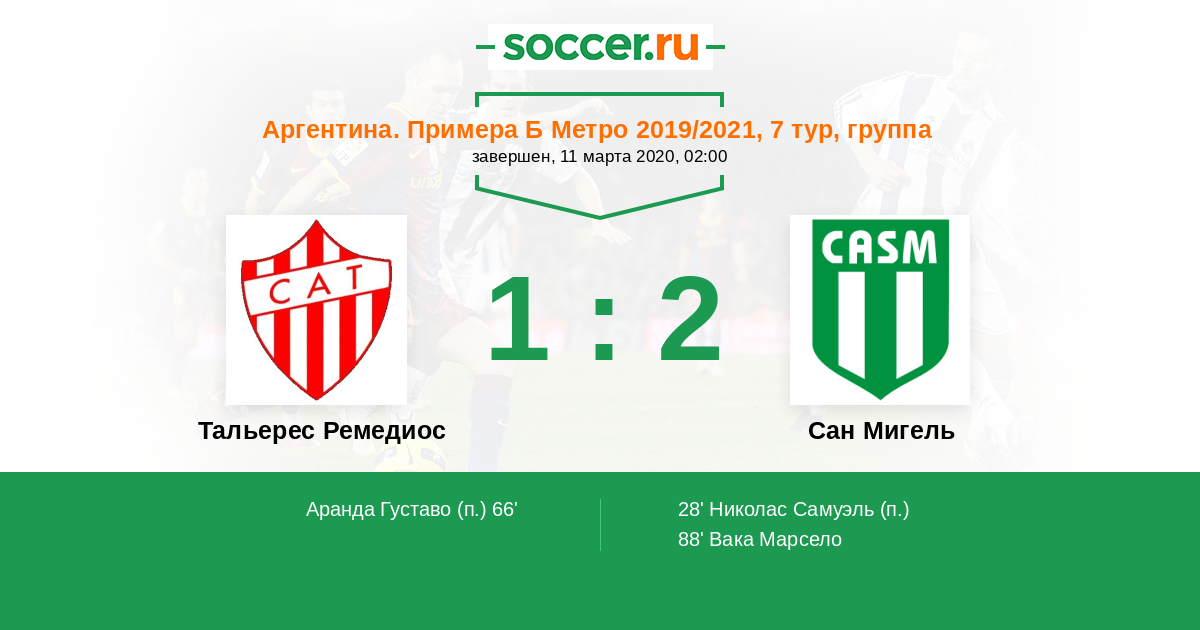 66' (1:1) Аранда Густаво