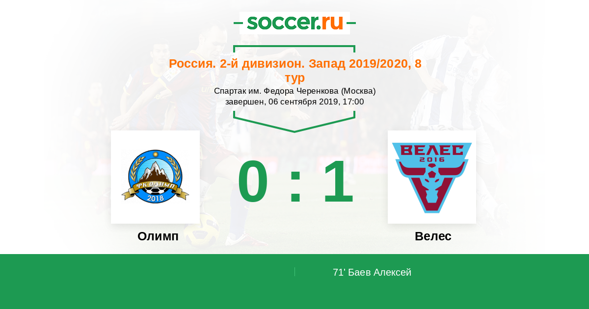 Матчи Россия. 2-й дивизион. Запад 2019/2020