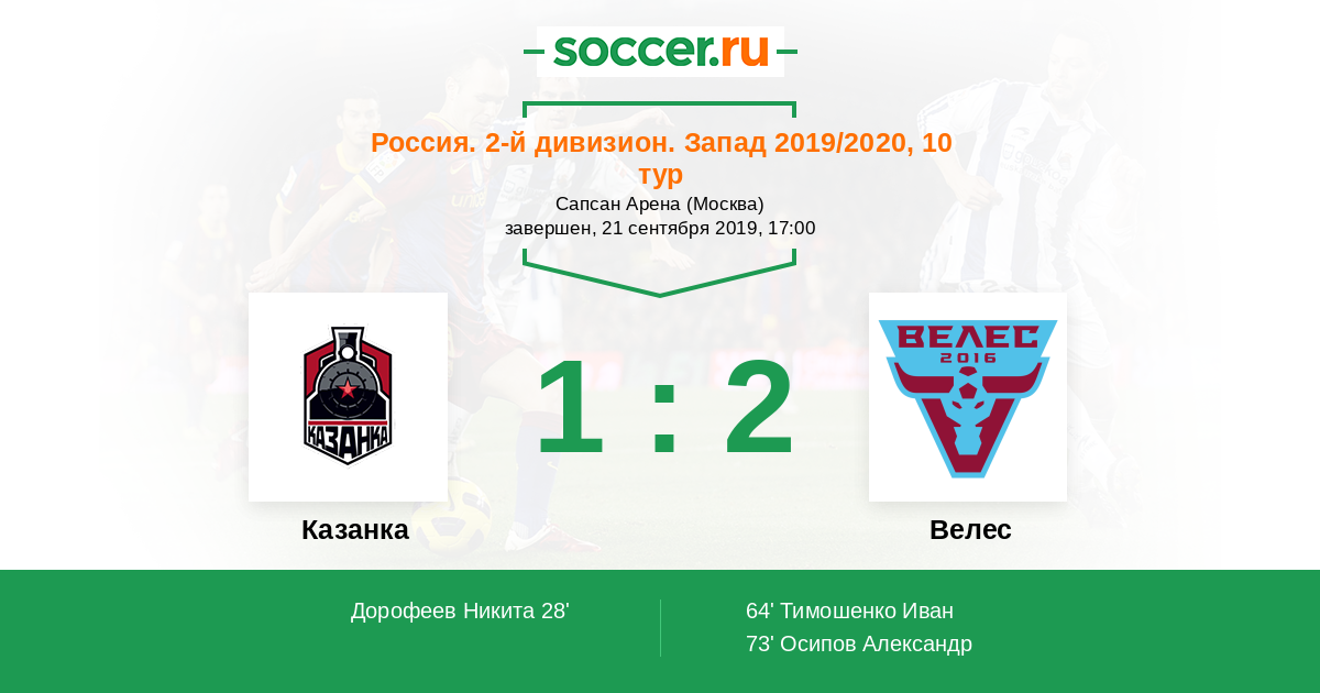 Матчи Россия. 2-й дивизион. Запад 2019/2020