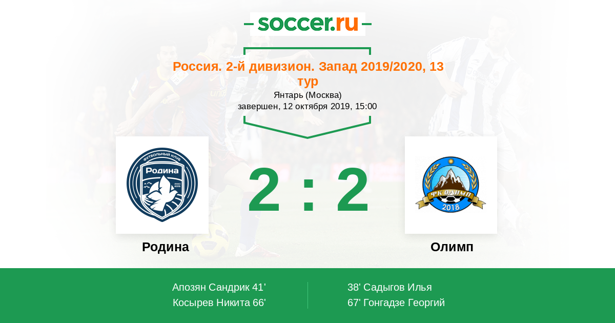 Матчи Россия. 2-й дивизион. Запад 2019/2020