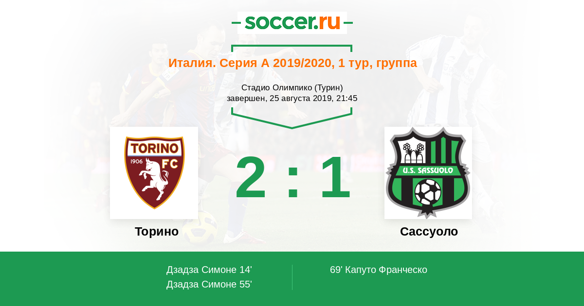 55' (2:0) Дзадза Симоне (11) (Белотти Андреа (9))