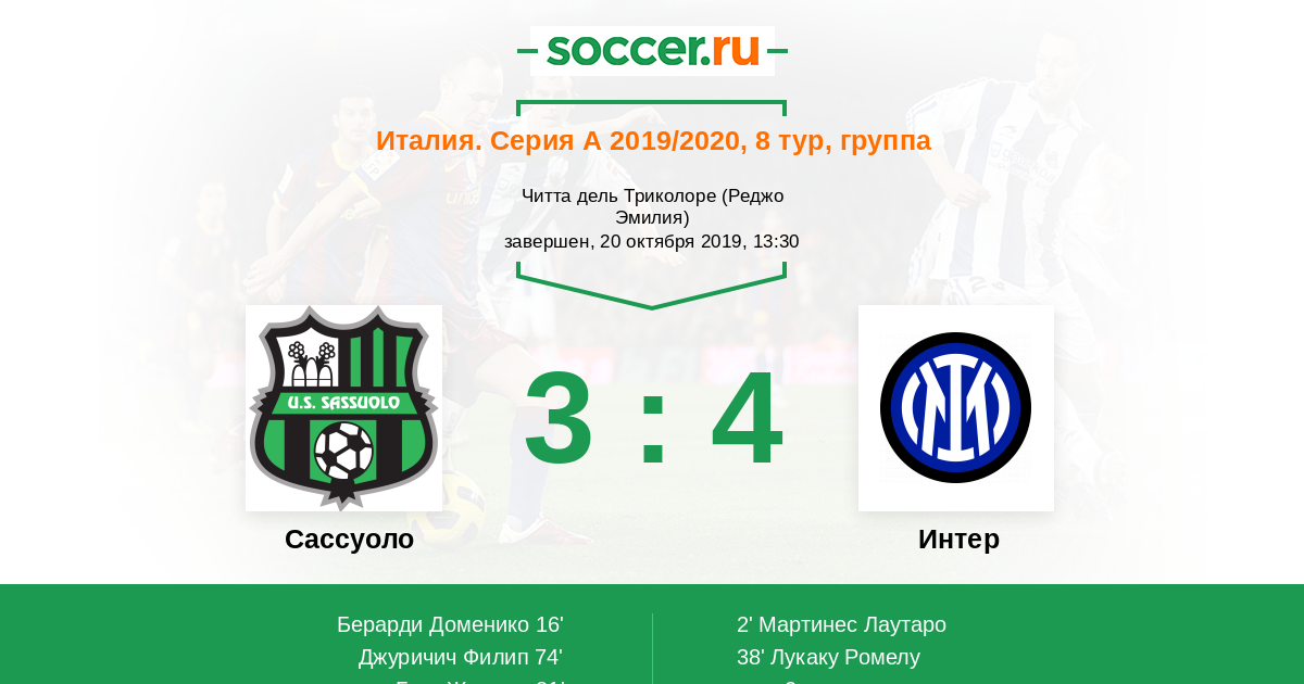 Дерби побратимов "Сассуоло" - "Интер" всегда интересно.