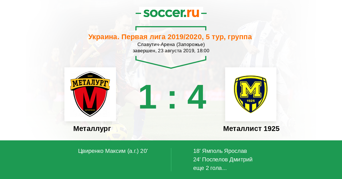 20' (1:1) Автогол Цвиренко Максим
