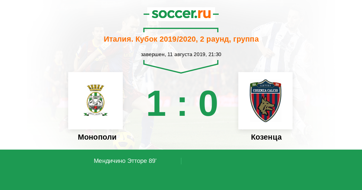89' (1:0) Мендичино Этторе (11)