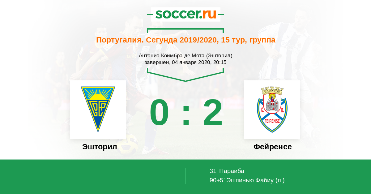 90+5’ 0:2(П) Эшпинью Фабиу