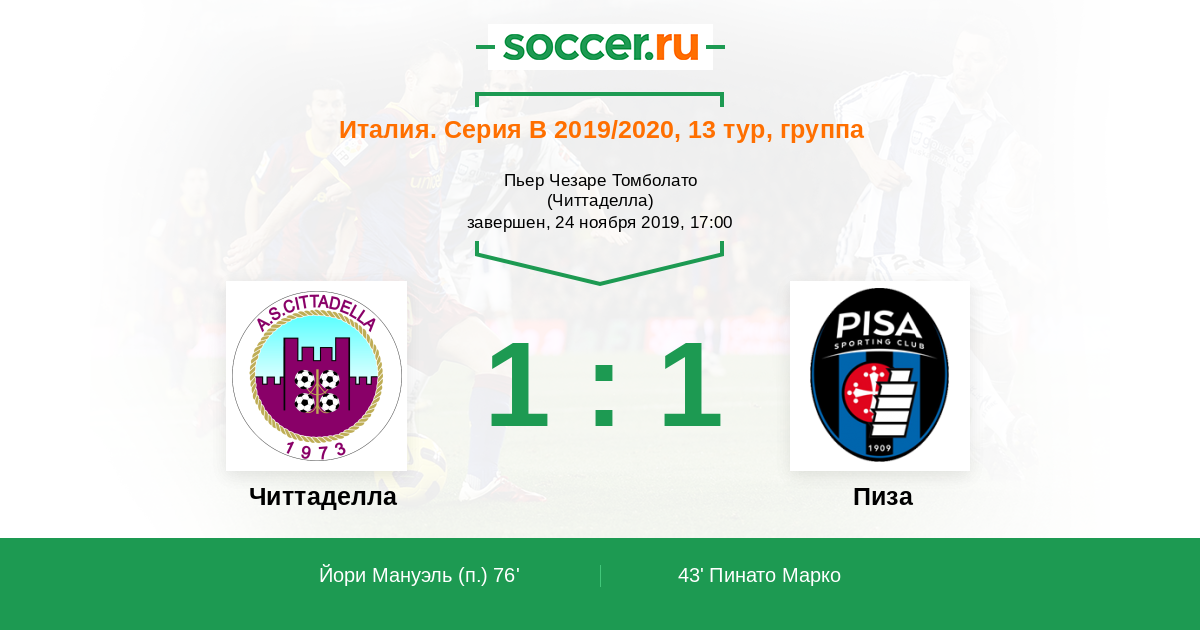43' (0:1) Пинато Марко (21) (Биринделли Самуэле (2))