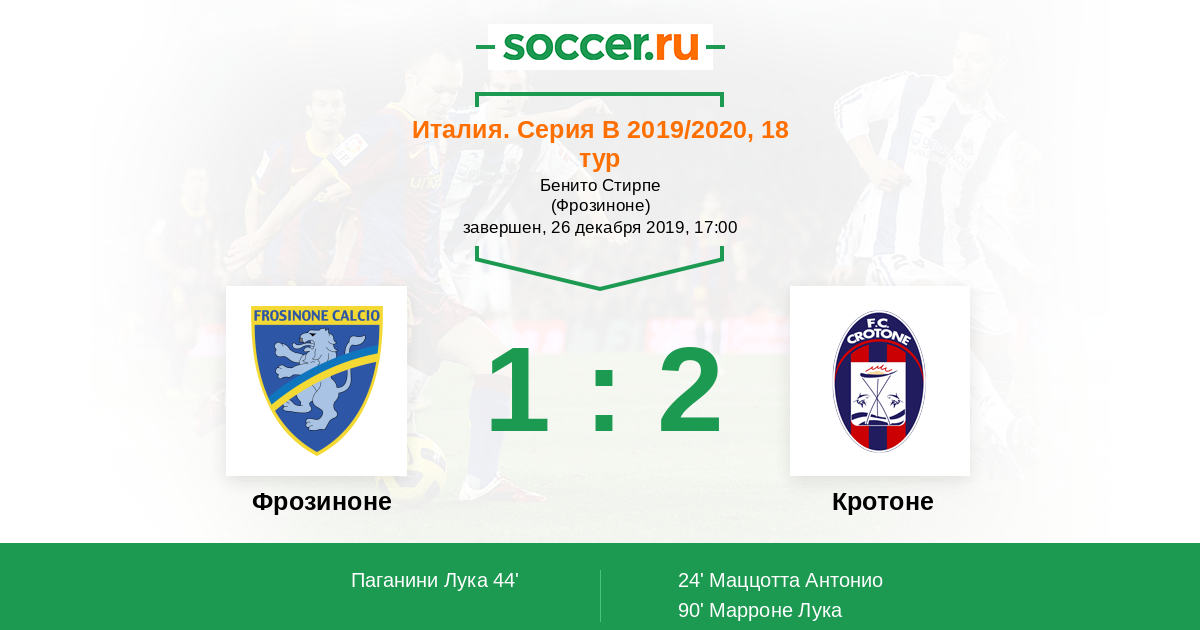 24' (0:1) Маццотта Антонио (23) (Мустаччио Маттиа (7))