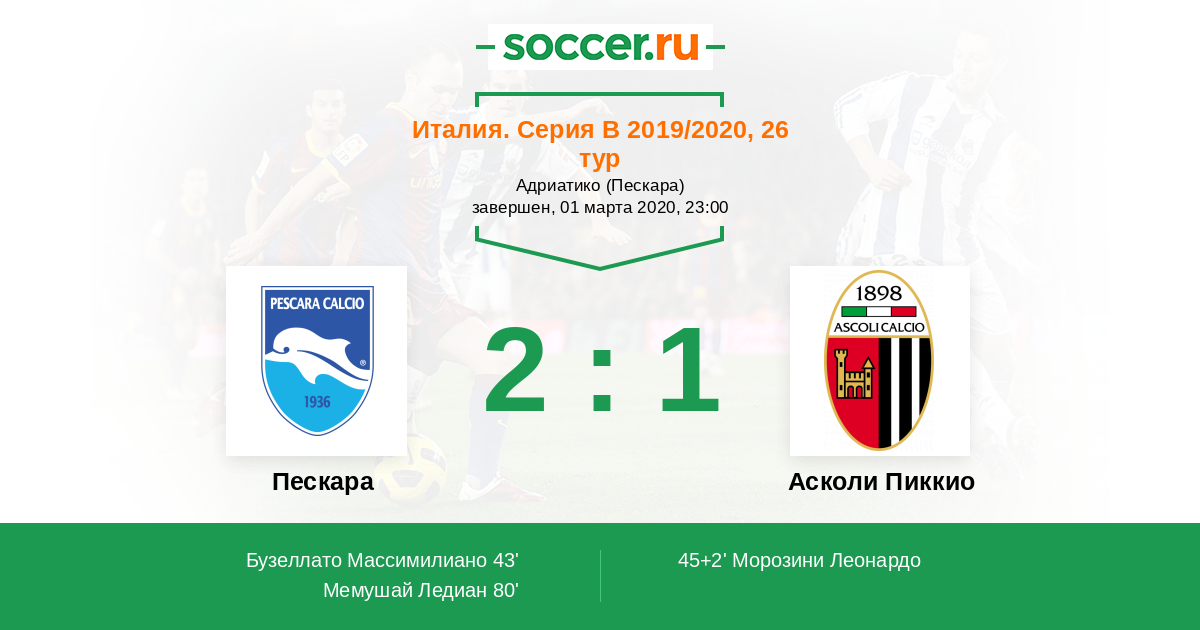 45+2' (1:1) Морозини Леонардо (38) (Скамакка Джанлука (9))