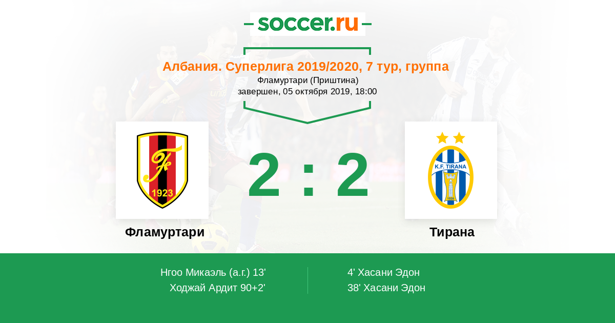 Гол90+2' (2:2) Ходжай Ардит