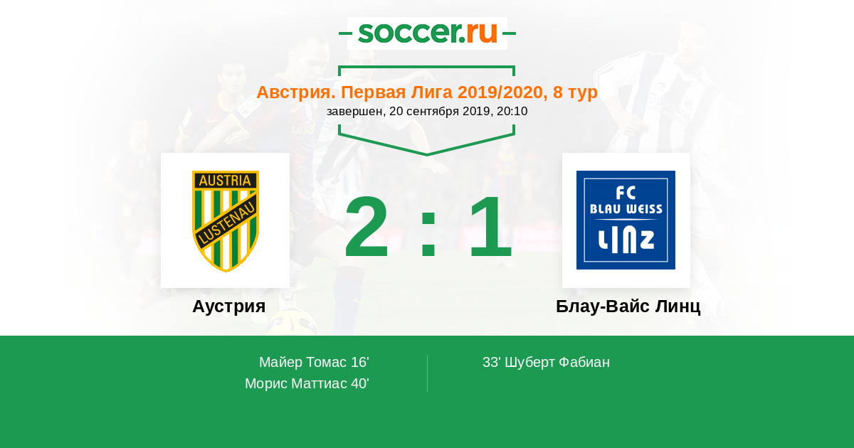 16' (1:0) Майер Томас (55) (Грабер Пиус (23))