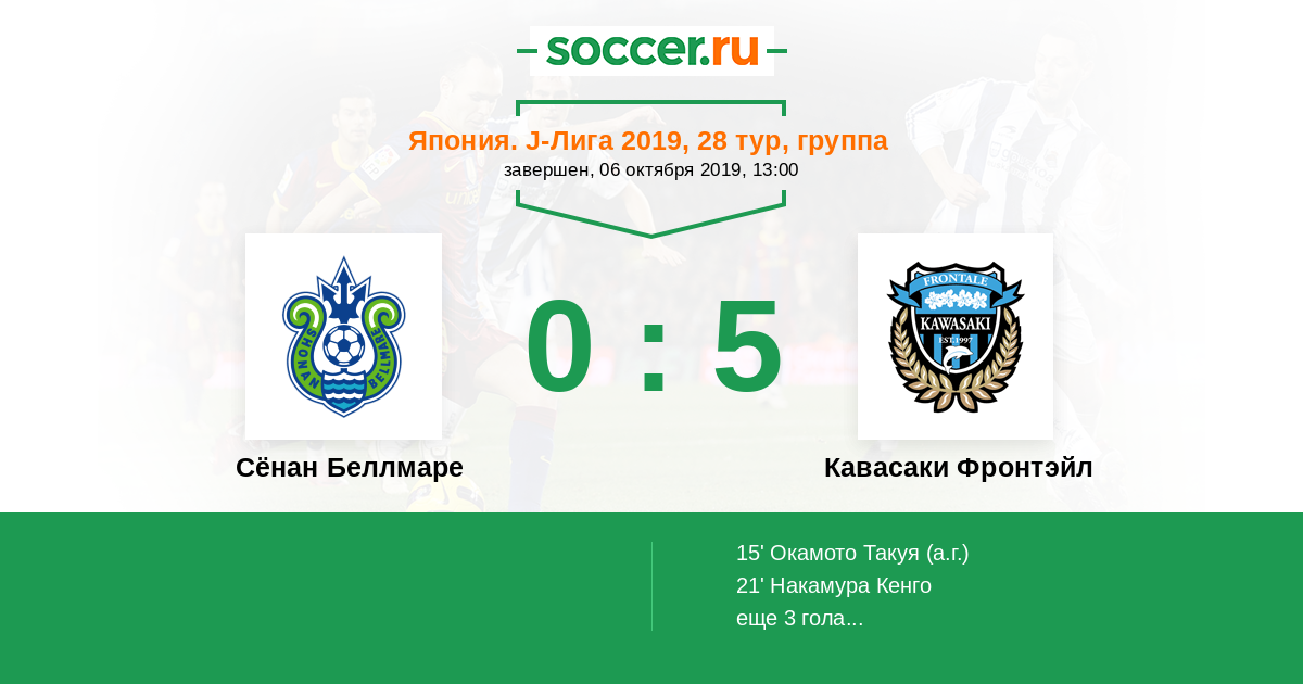21' (0:2) Накамура Кенго (14) (Ноборизато Кухей (2))
