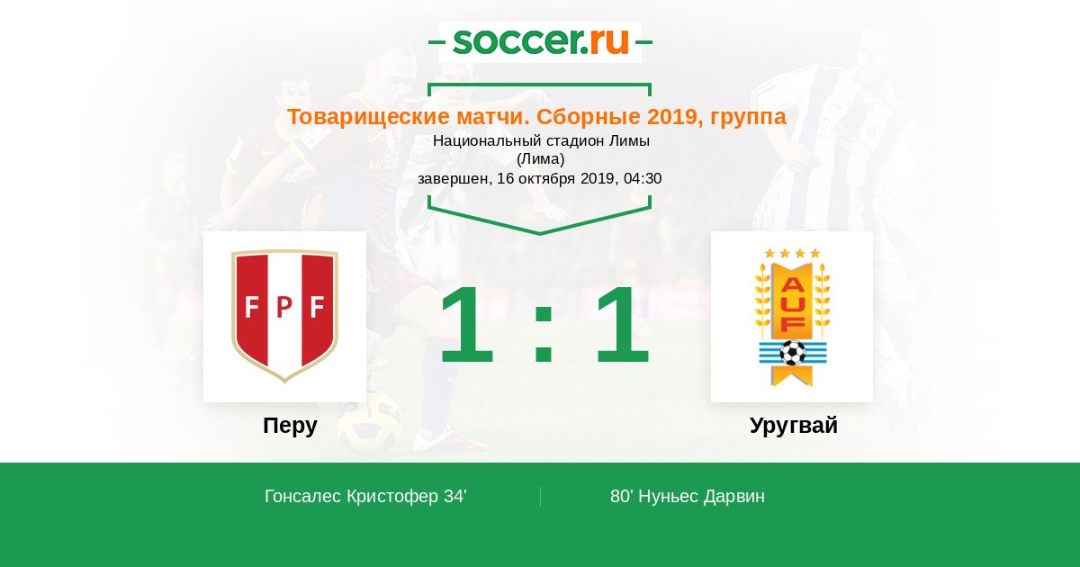 34' (1:0) Гонсалес Кристофер (Адвинкула Луис)