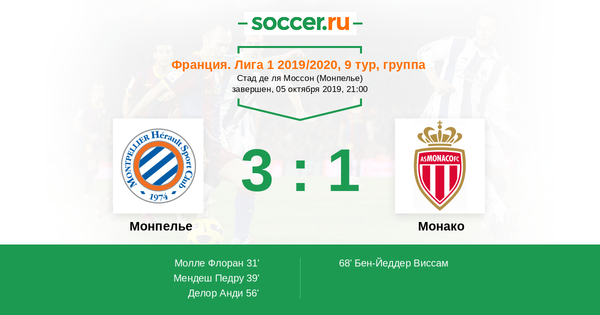 56' (3:0) Делор Анди (9) (Молле Флоран (25))