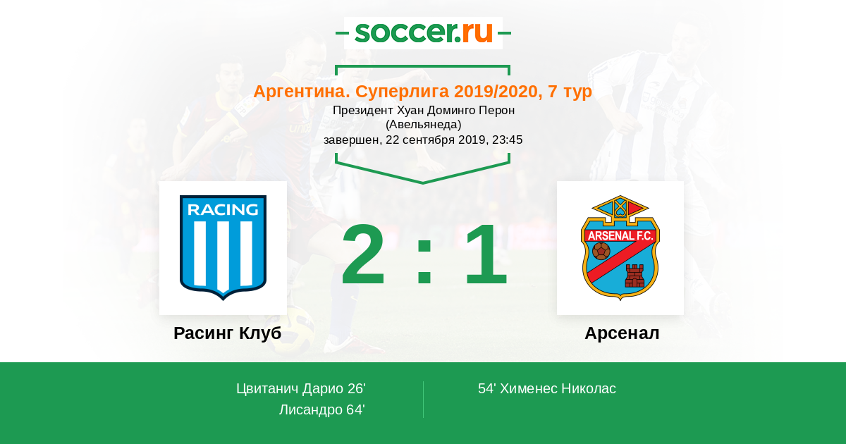26' (1:0) Цвитанич Дарио (20) (Барбона Давид (11))
