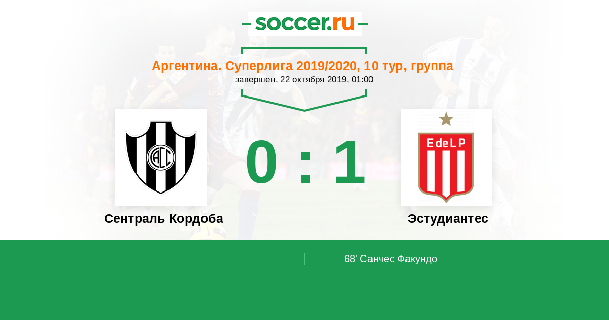 68' (0:1) Санчес Факундо (14) (Лопес Эдвар (28))