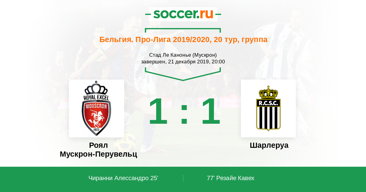 25' (1:0) Чиранни Алессандро (13) (Гарсия Алейш (24))